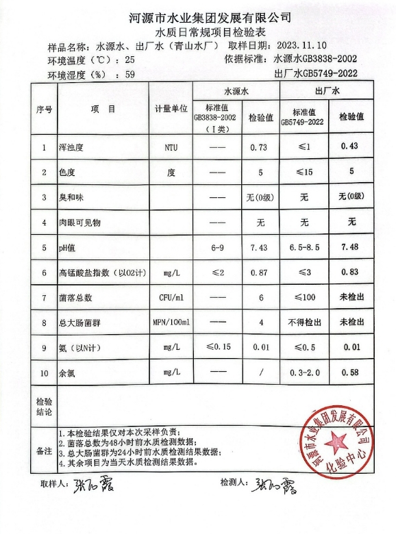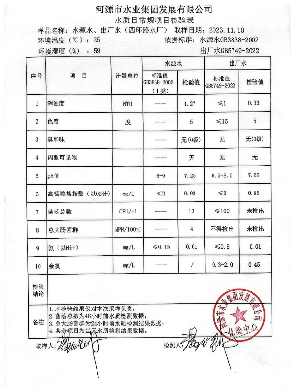 2023年11月10日水質(zhì)檢驗(yàn)報告 ???