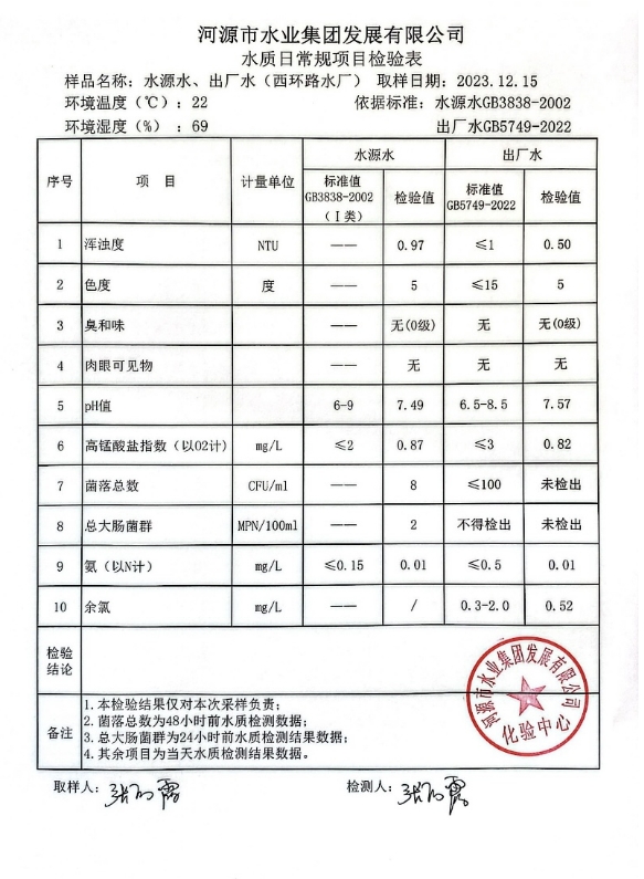 2023年12月15日水質檢驗報告 ???