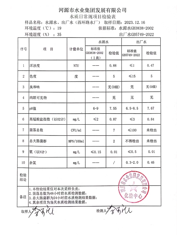 2023年12月16日水質(zhì)檢驗報告 ???