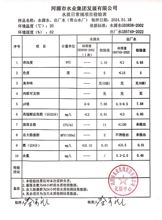 2024年1月18日水質(zhì)檢驗(yàn)報(bào)告 ???