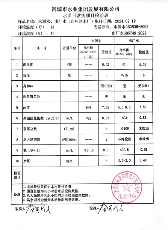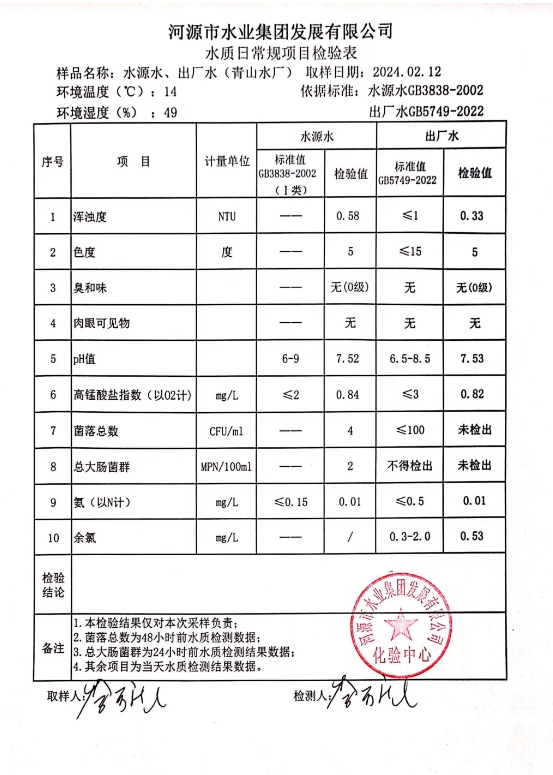 2024年2月12日水質(zhì)檢驗(yàn)報(bào)告 ???