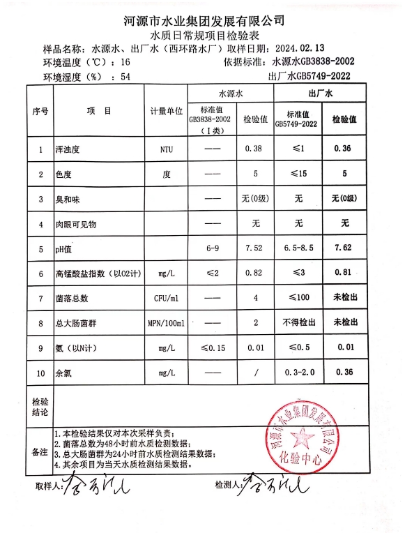 2024年2月13日水質(zhì)檢驗(yàn)報(bào)告 ???
