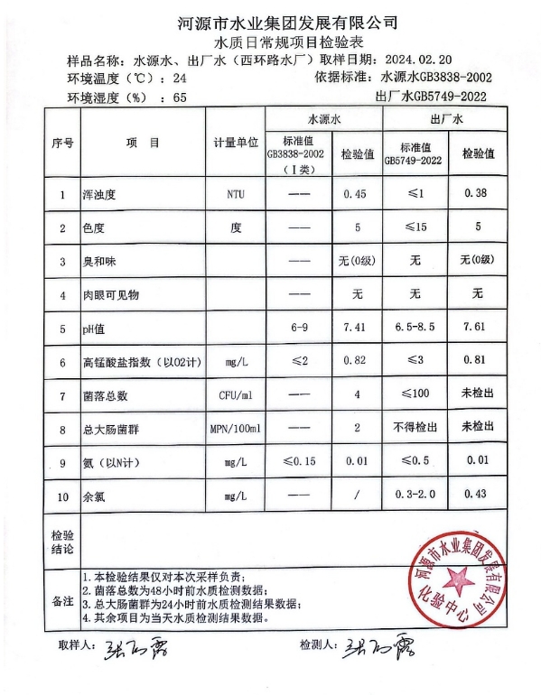 2024年2月20日水質(zhì)檢驗(yàn)報(bào)告 ???