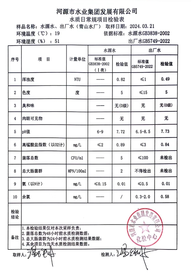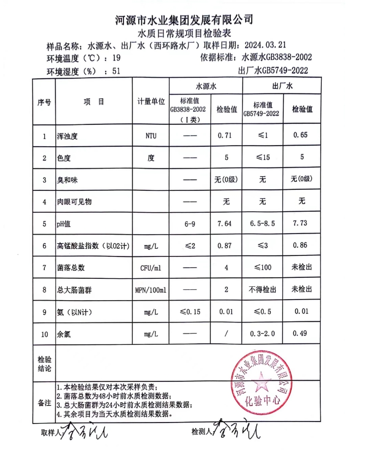 2024年3月21日水質(zhì)檢驗(yàn)報(bào)告
