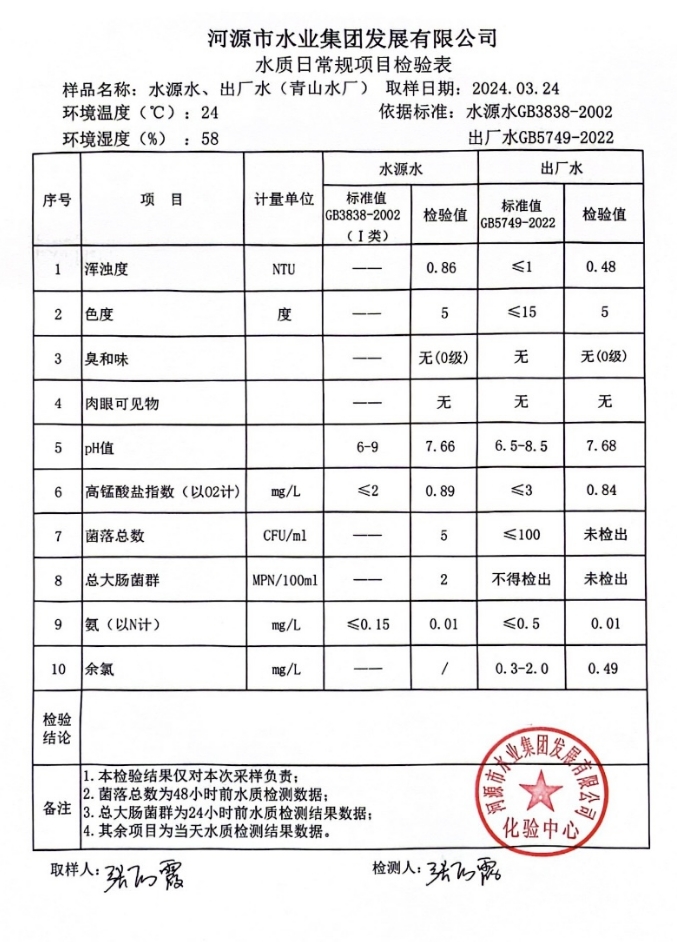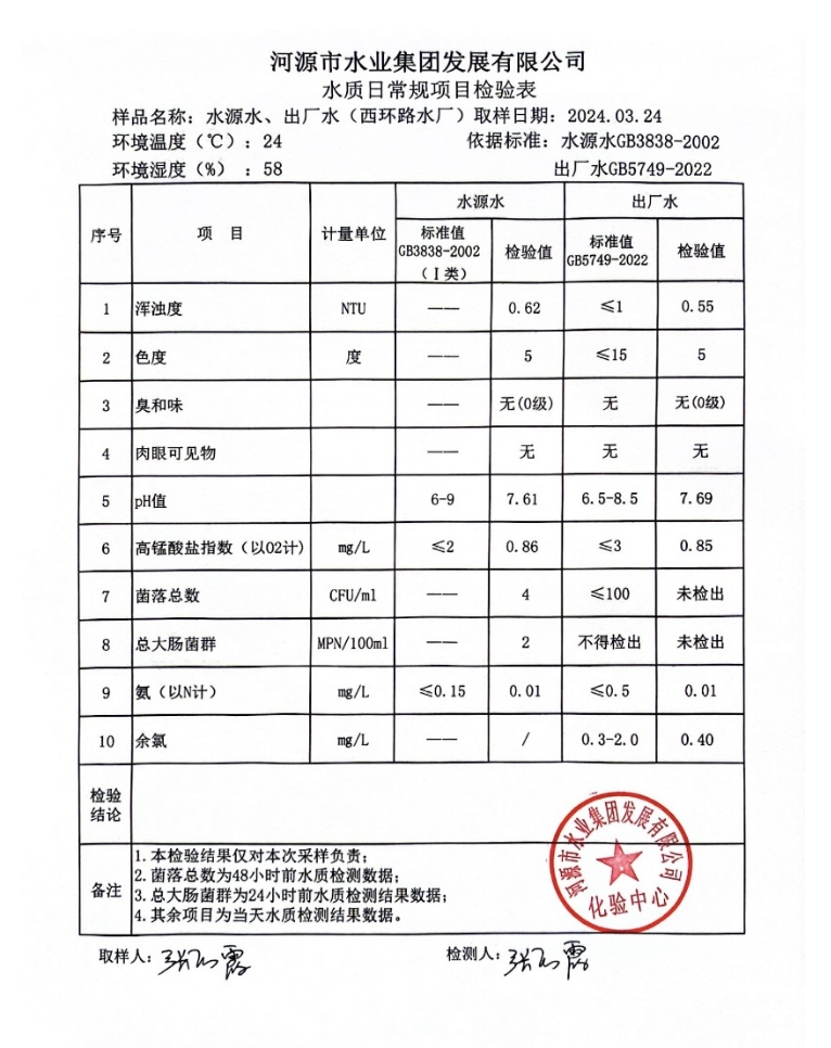 2024年3月24日水質(zhì)檢驗(yàn)報(bào)告