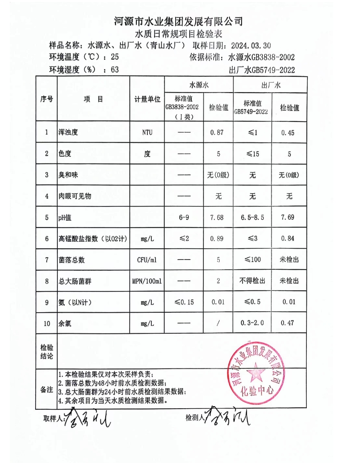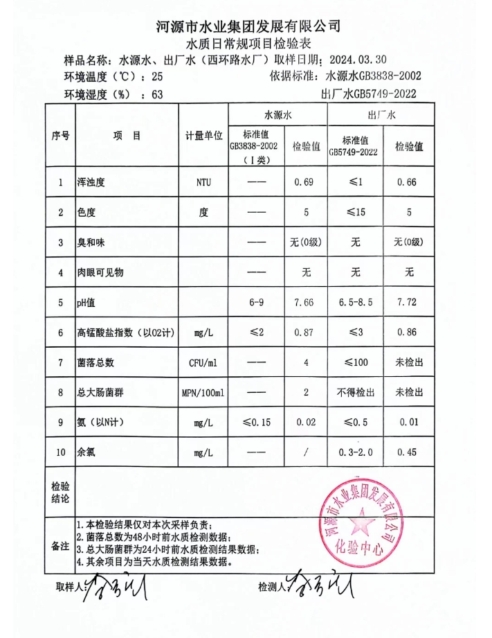 2024年3月30日水質(zhì)檢驗(yàn)報(bào)告