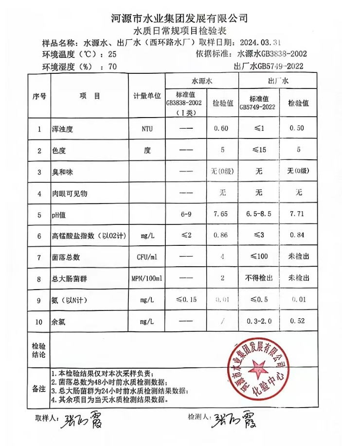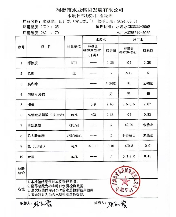 2024年3月31日水質(zhì)檢驗(yàn)報(bào)告