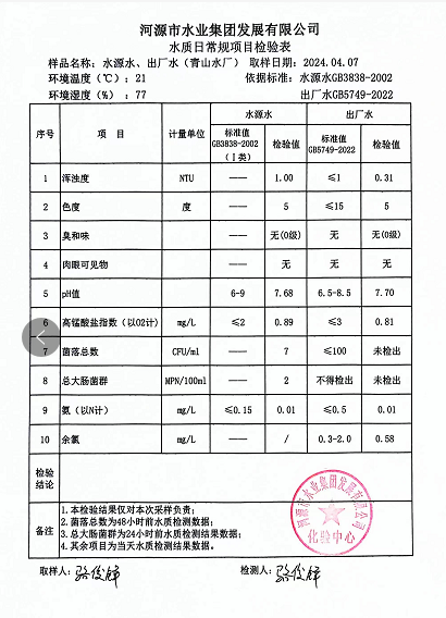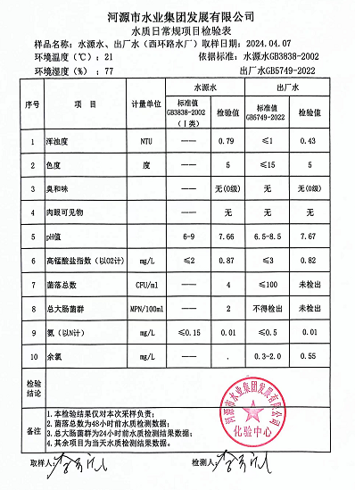2024年4月7日水質(zhì)檢驗(yàn)報(bào)告
