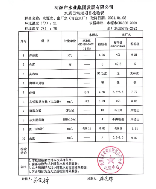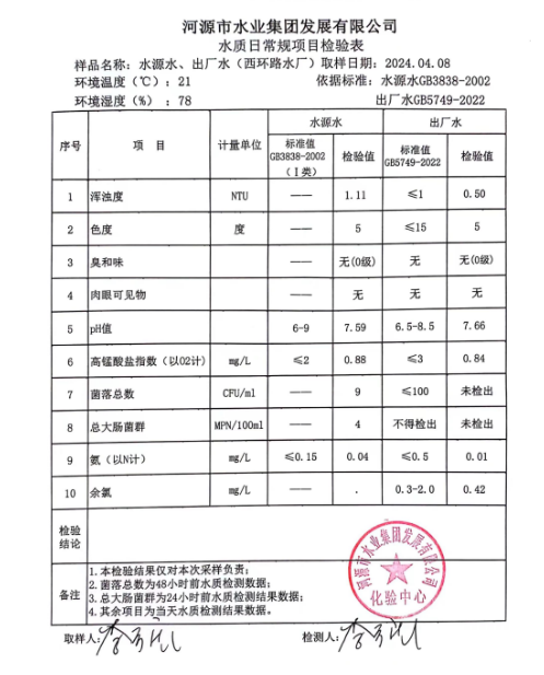 2024年4月8日水質(zhì)檢驗(yàn)報(bào)告