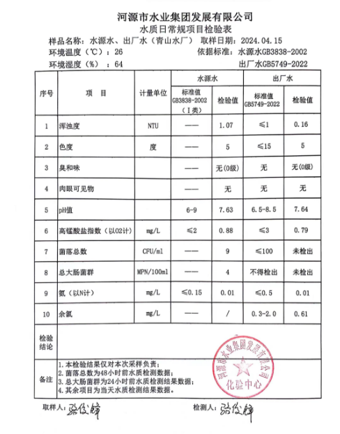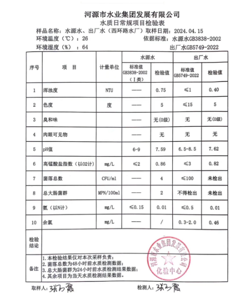 2024年4月15日水質(zhì)檢驗(yàn)報(bào)告