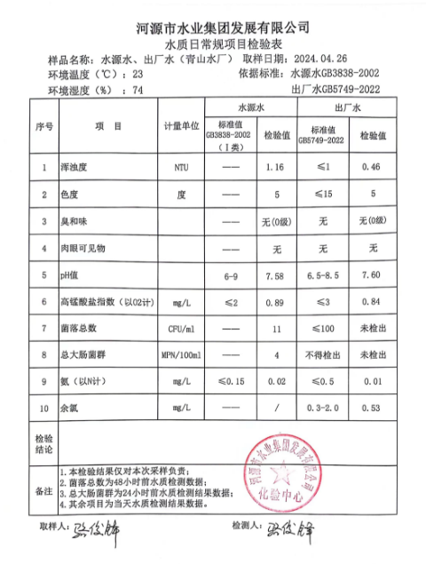 2024年4月26日水質(zhì)檢驗(yàn)報(bào)告 ???
