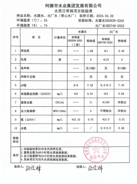 2024年4月29日水質(zhì)檢驗報告 ???