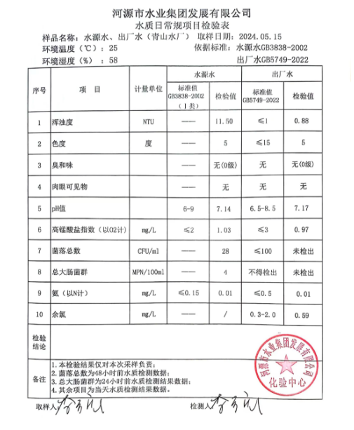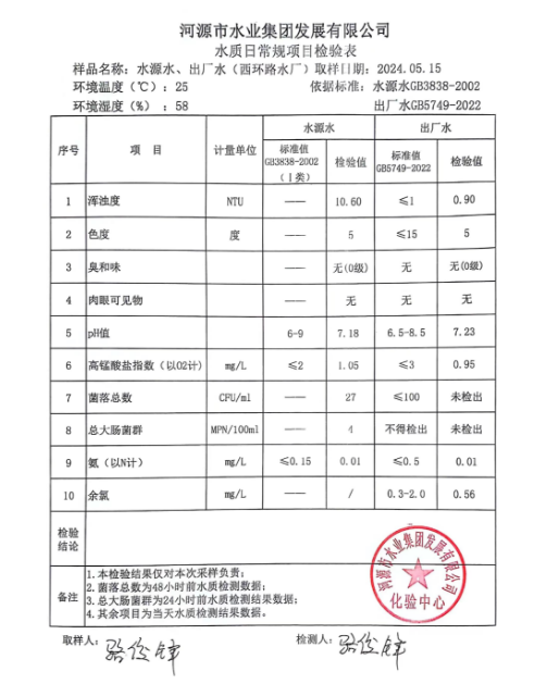 2024年5月15日水質(zhì)檢驗(yàn)報(bào)告 ???