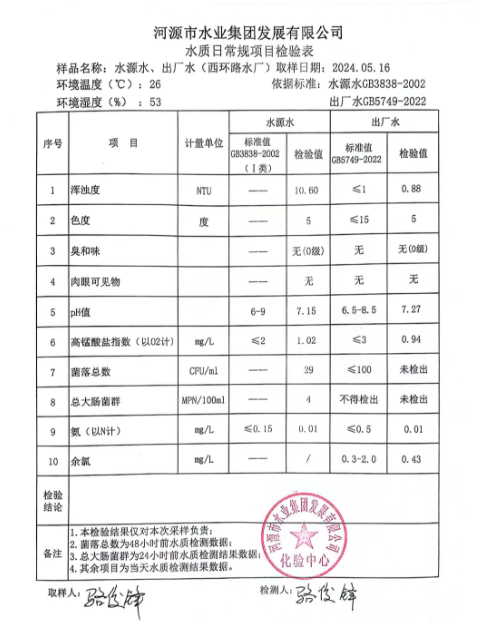 2024年5月16日水質(zhì)檢驗(yàn)報(bào)告 ???