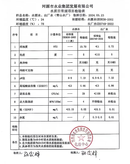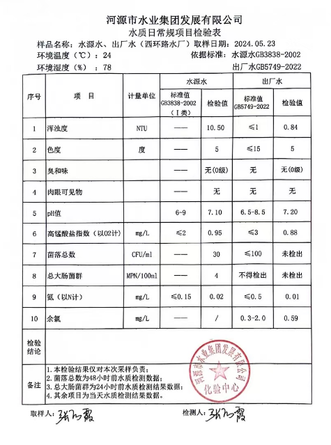 2024年5月23日水質(zhì)檢驗報告 ???