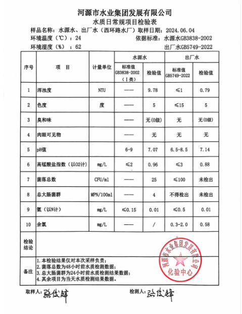 2024年6月4日水質(zhì)檢驗(yàn)報(bào)告 ???