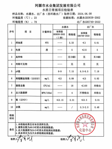 2024年6月8日水質(zhì)檢驗(yàn)報(bào)告 ???