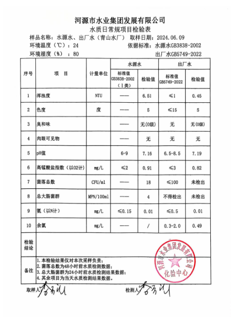 2024年6月9日水質(zhì)檢驗報告 ???
