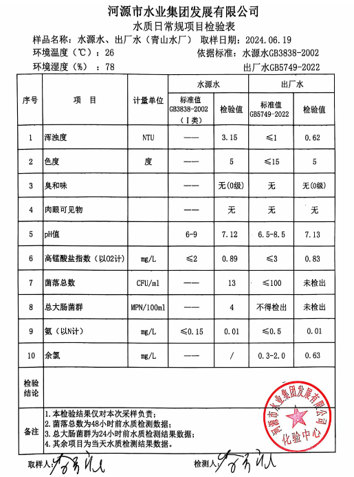 2024年6月19日水質(zhì)檢驗(yàn)報(bào)告