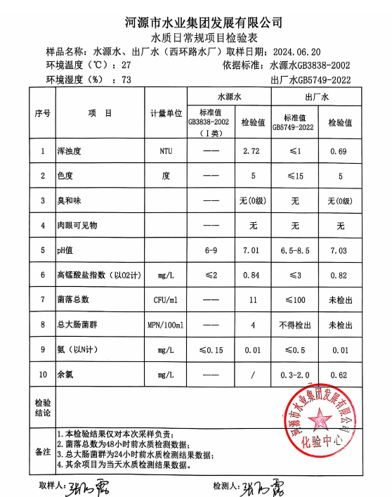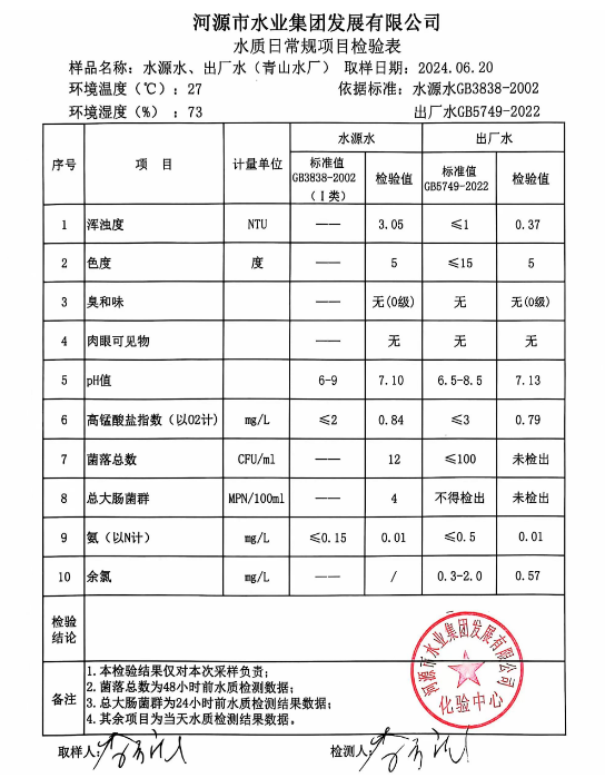 2024年6月20日水質(zhì)檢驗報告