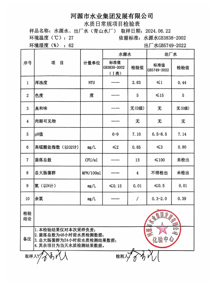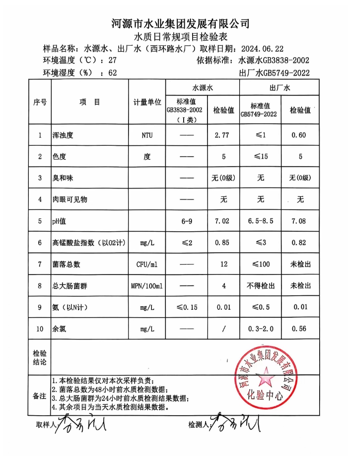 2024年6月22日水質(zhì)檢驗(yàn)報(bào)告