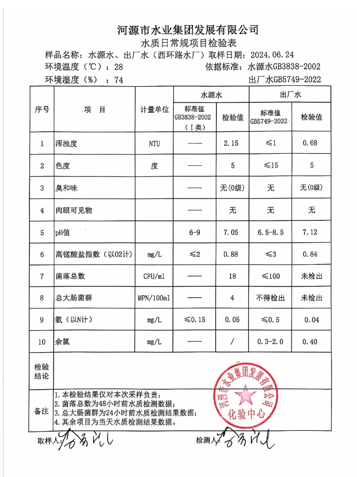 2024年6月24日水質(zhì)檢驗(yàn)報(bào)告