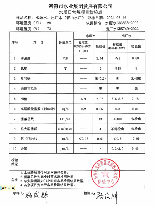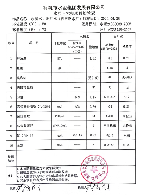 2024年6月26日水質(zhì)檢驗報告