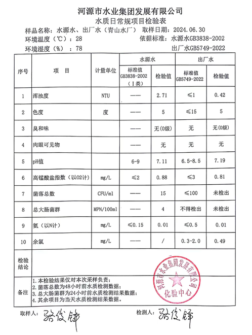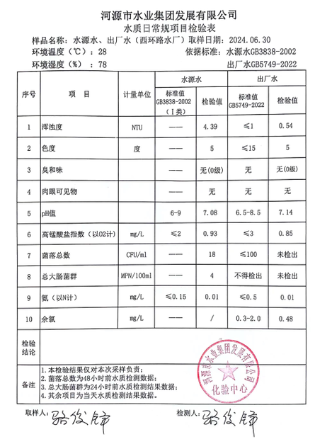 2024年6月30日水質(zhì)檢驗(yàn)報(bào)告