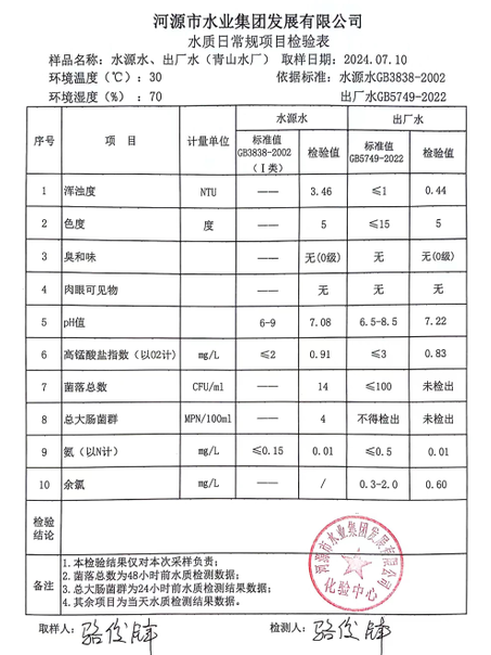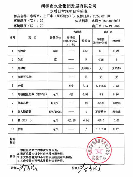 2024年7月10日水質(zhì)檢驗(yàn)報(bào)告