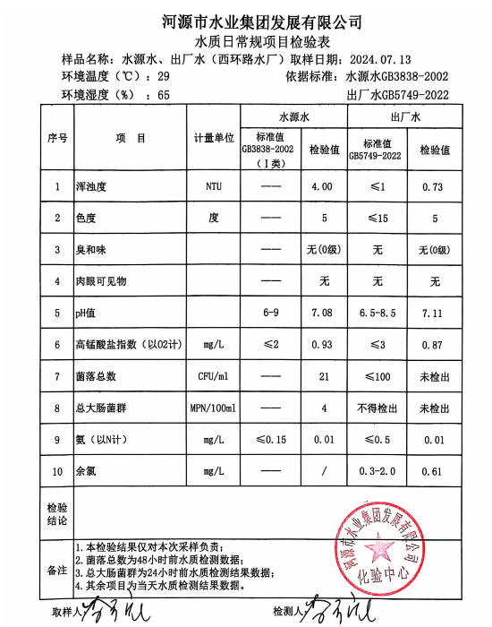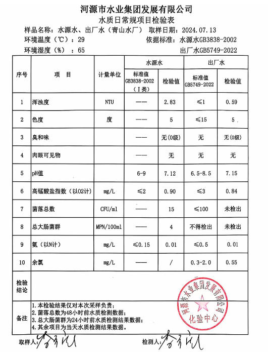 2024年7月13日水質(zhì)檢驗(yàn)報(bào)告