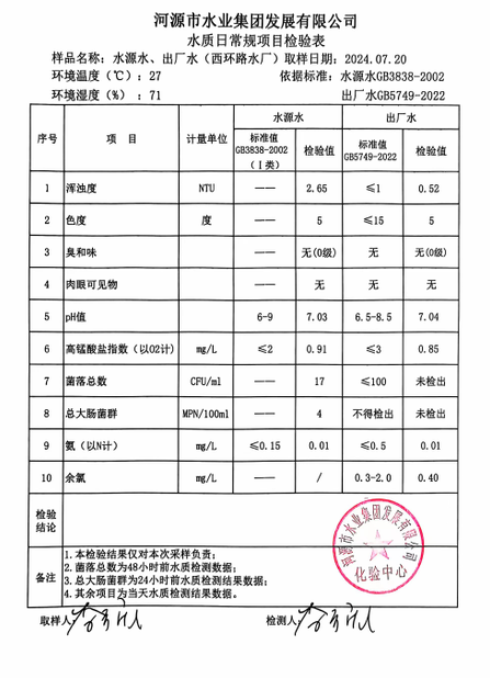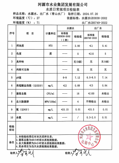 2024年7月20日水質(zhì)檢驗(yàn)報(bào)告