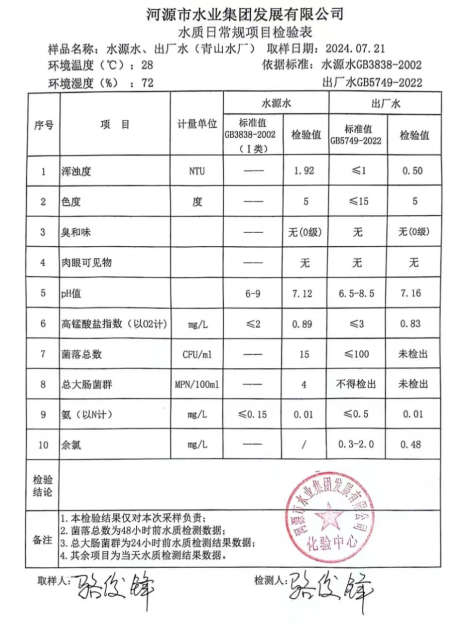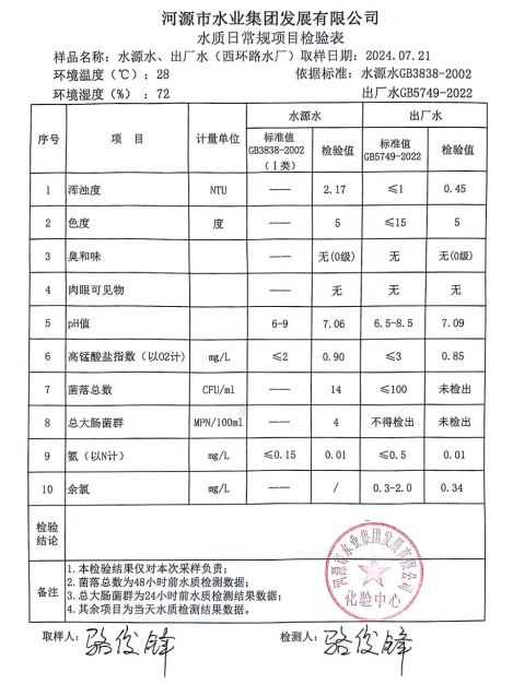 2024年7月21日水質(zhì)檢驗(yàn)報(bào)告