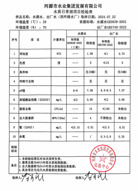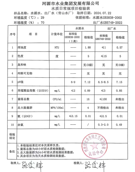 2024年7月22日水質(zhì)檢驗報告