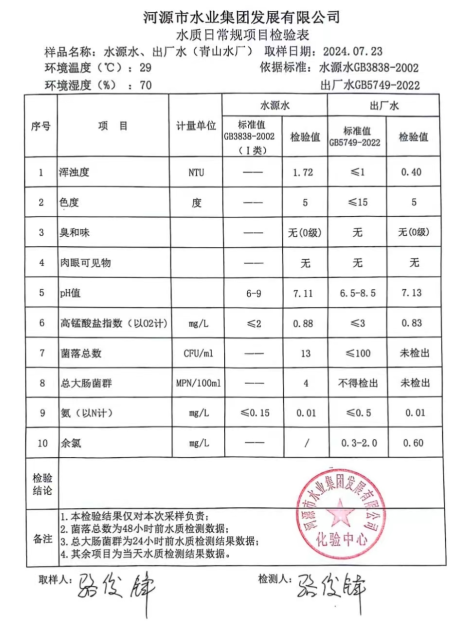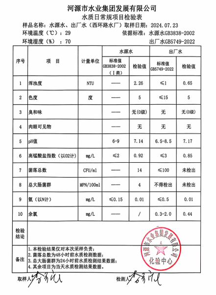2024年7月23日水質(zhì)檢驗(yàn)報(bào)告