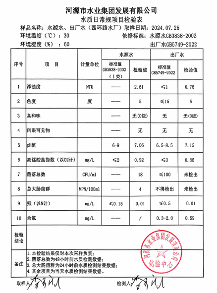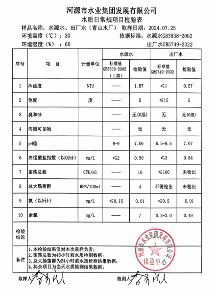 2024年7月25日水質(zhì)檢驗報告