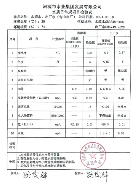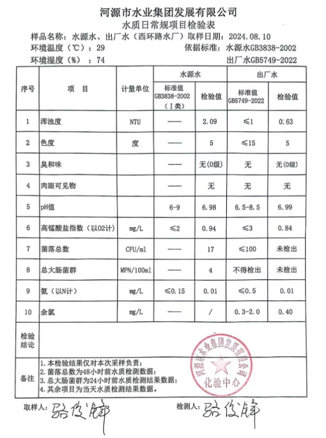 2024年8月10日水質(zhì)檢驗報告