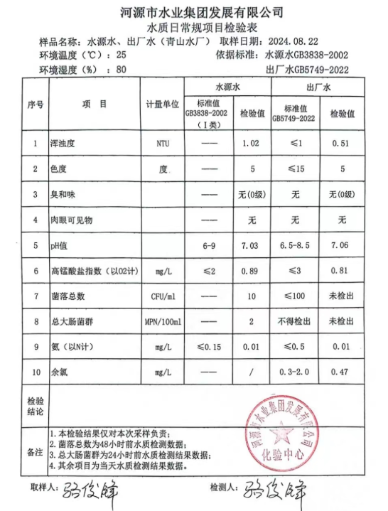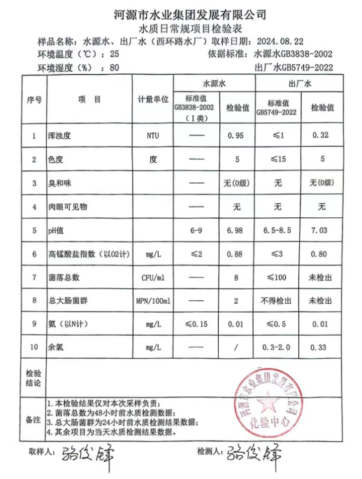 2024年8月22日水質(zhì)檢驗報告