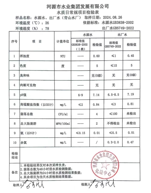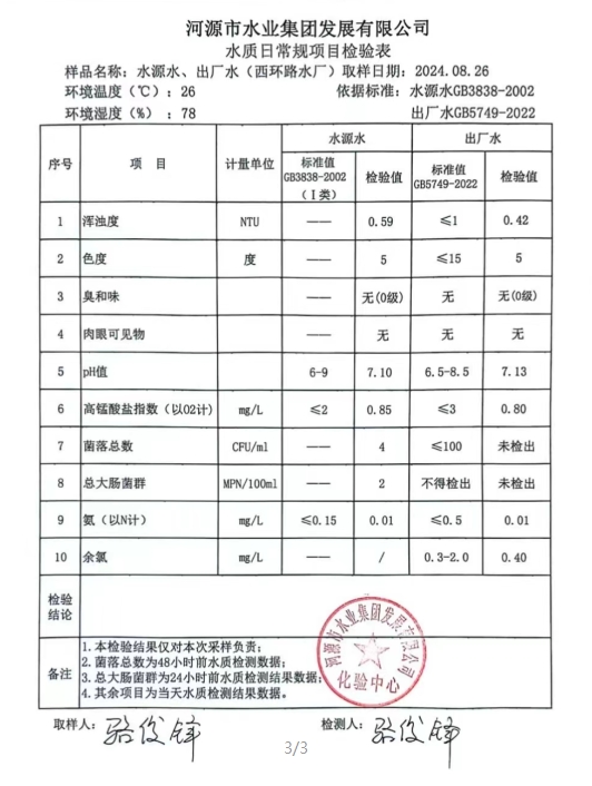 2024年8月26日水質檢驗報告