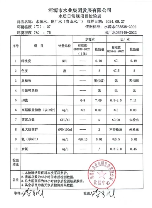 2024年8月27日水質(zhì)檢驗(yàn)報(bào)告