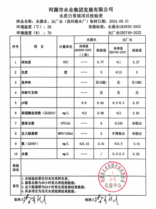 2024年8月31日水質(zhì)檢驗(yàn)報(bào)告