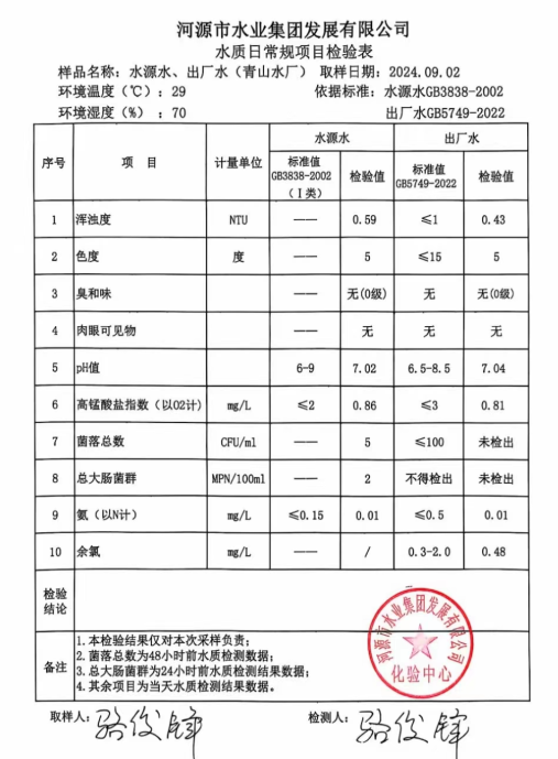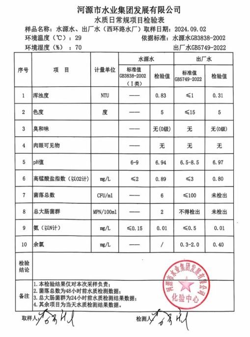 2024年9月2日水質(zhì)檢驗報告