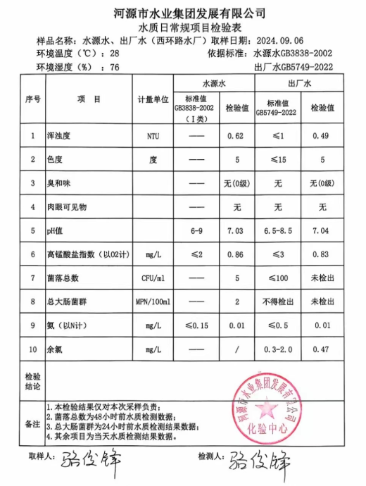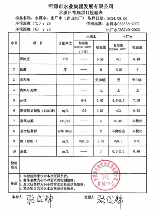 2024年9月6日水質(zhì)檢驗(yàn)報(bào)告