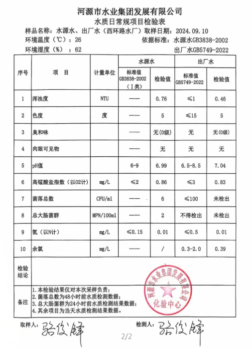 2024年9月10日水質(zhì)檢驗(yàn)報(bào)告