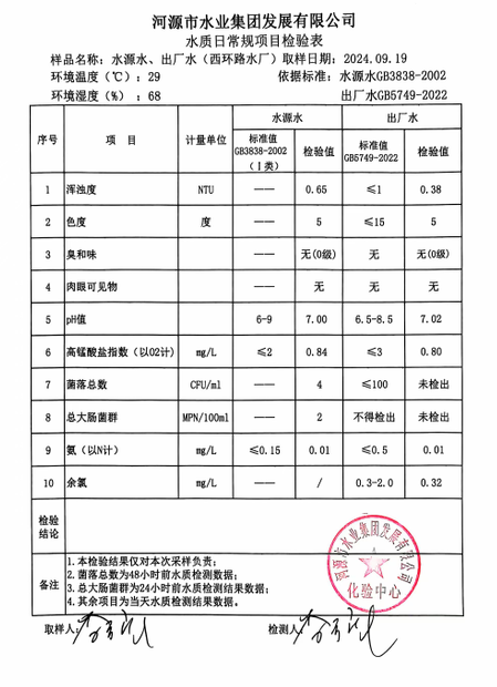 2024年9月19日水質檢驗報告