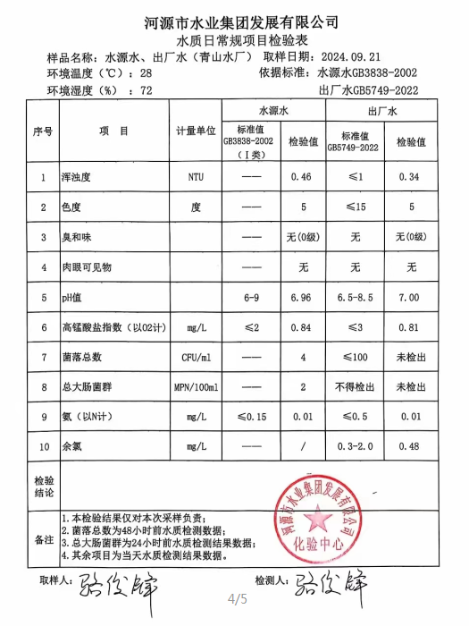 2024年9月21日水質(zhì)檢驗(yàn)報(bào)告