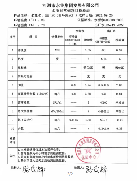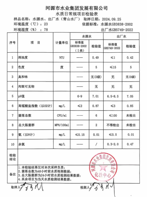 2024年9月25日水質(zhì)檢驗(yàn)報(bào)告