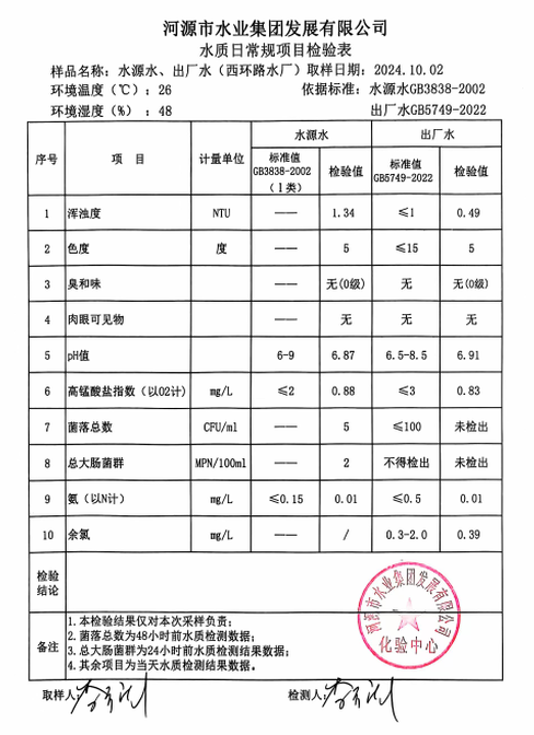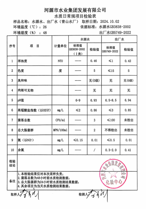2024年10月2日水質(zhì)檢驗報告