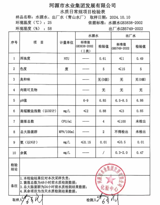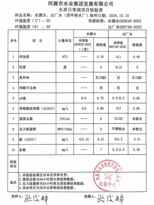 2024年10月10日水質(zhì)檢驗報告