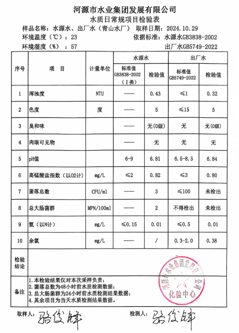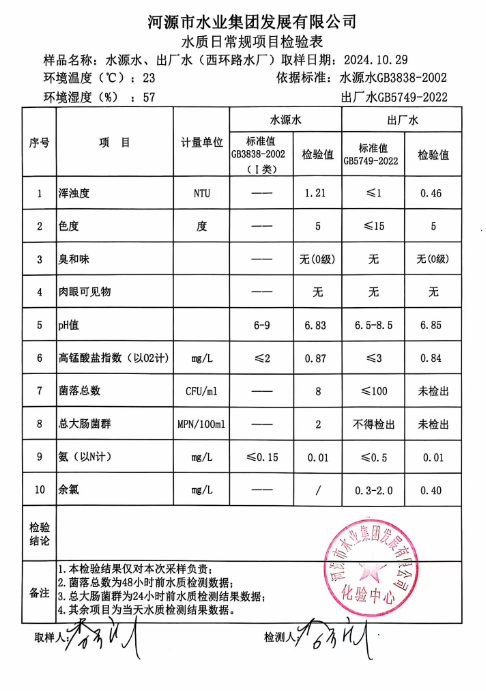 2024年10月29日水質(zhì)檢驗(yàn)報(bào)告